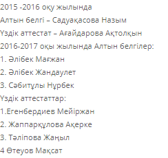 2016-2017 оқы жылында Алтын белгілер: