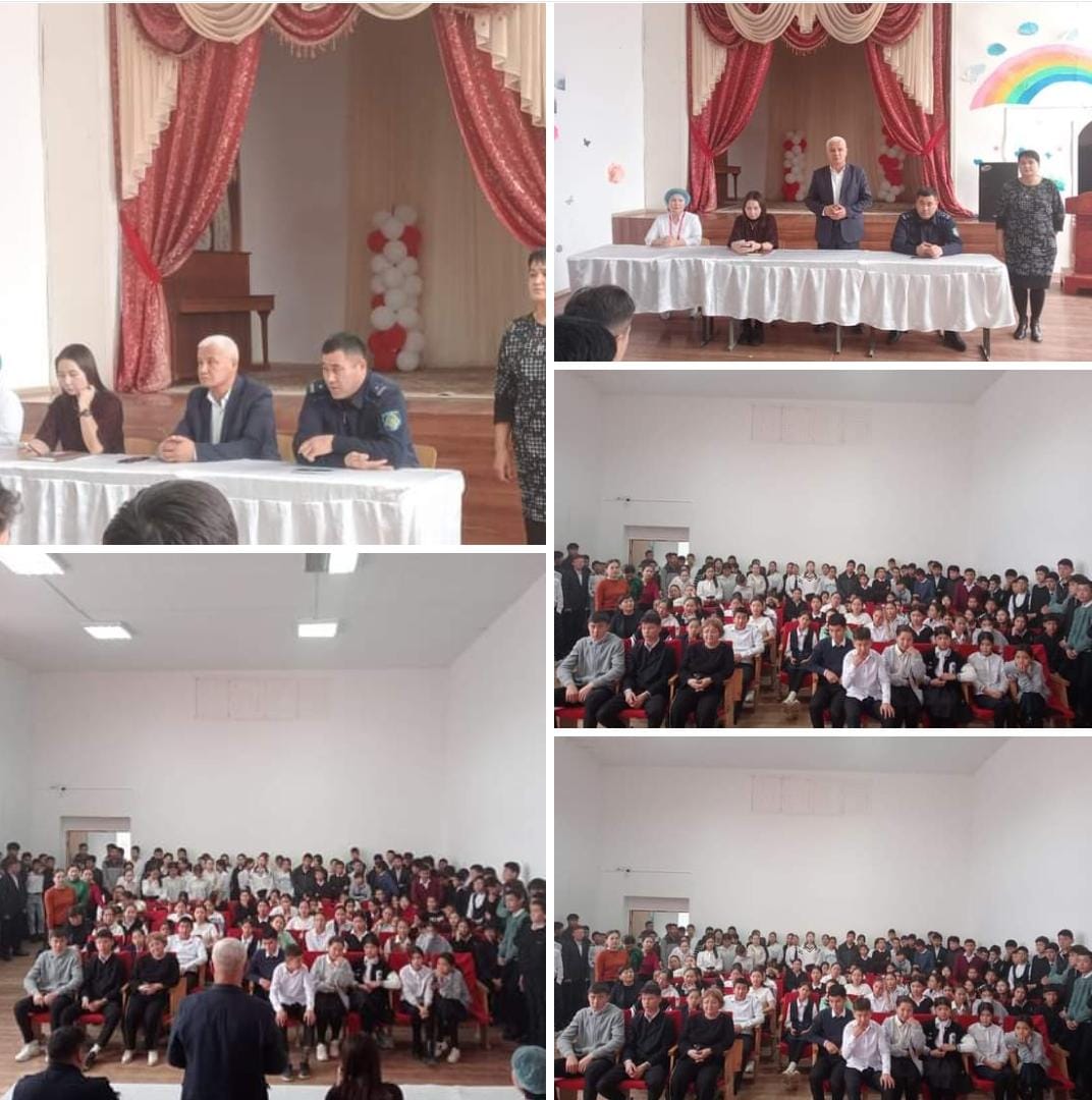 🔰🔰Балалардың қауіпсіздігін сақтау, жол-көлік оқиғаларының алдын алу мақсатында сынып жетекшілерінің оқушыны үйіне жетуін қадағалап, ата-аналары мектепке келіп алып кетулерін қадағалауды және жаяу жүргінші балалардың киімі мен сөмкелеріне жарық шағылыстыратын элементтердің тағылуын бақылауға алу жөнінде ескертіліп, құқықбұзушылықтың алдын алу,нашақорлық,жол-көлік жарақаттануы,қауіпсіз мінез-құлық,дағдарыс жағдайындағы іс-әрекеттер және тағы басқа түрлі себептердің болдырмау мақсатында түсіндірме жұмыстары ауылдық учаскелік полиция майоры Көркембаев Бақытжан және мектеп директоры Ү.Ахметов,мектеп директорының тәрбие ісі жөніндегі орынбасарлары З.Қозыбаева,Н.Піржанов,мектеп психологі Л.Төлешова,әлеуметтік педагог Ұ.Елеусінова,мектеп аяжаны С.Альжанова,8-11 сынып жетекшілері бірлескен жоспар аясында жұмыстар жүргізілді.