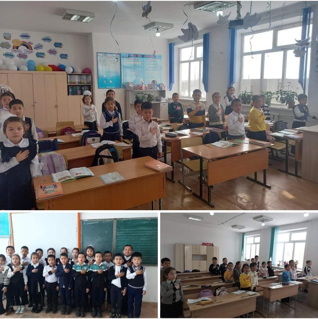 №157 Б.Пәрімбетов орта мектебінде бастауыш білім алушылар арасында да Мемлекеттік рәміздерді ұлықтау Отансүйгіштік пен азаматтық сезімін қалыптастыруға ықпал ету мақсатында Мемлекеттік Гимн орындалды.
