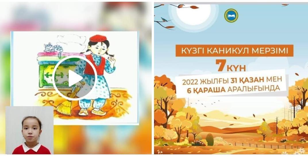 🍁️" Оқуға құштар мектеп күзгі демалыста " жобасы бойынша 3 " В" сынып оқушысы Камалбек Ақару "Мақтақыз бен мысық"ертегісі.